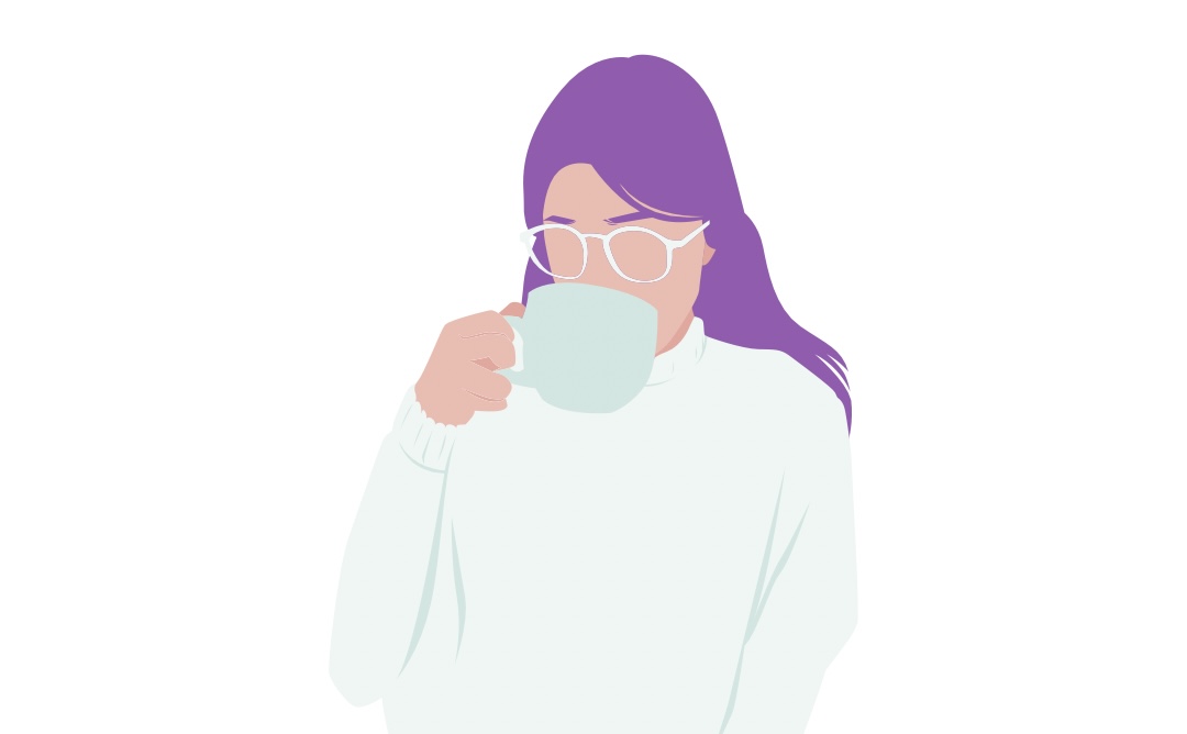 ミルクたっぷりのカフェオレ片手に